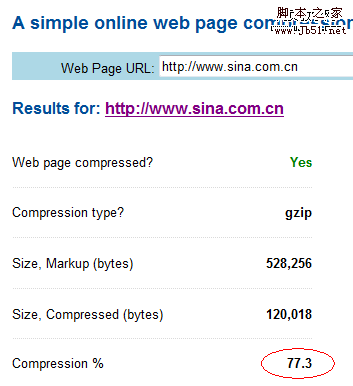該工具地址http://www.gidnetwork.com/tools/gzip-test.php 大家也可以測(cè)試下自己的網(wǎng)站壓縮后的情況。