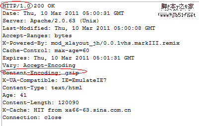 例如,新浪的緩存服務(wù)器,也是HTTP1.0協(xié)議的,但是他們就很聰明的針對(duì)HTTP1.0也開(kāi)啟了壓縮服務(wù),如下圖: