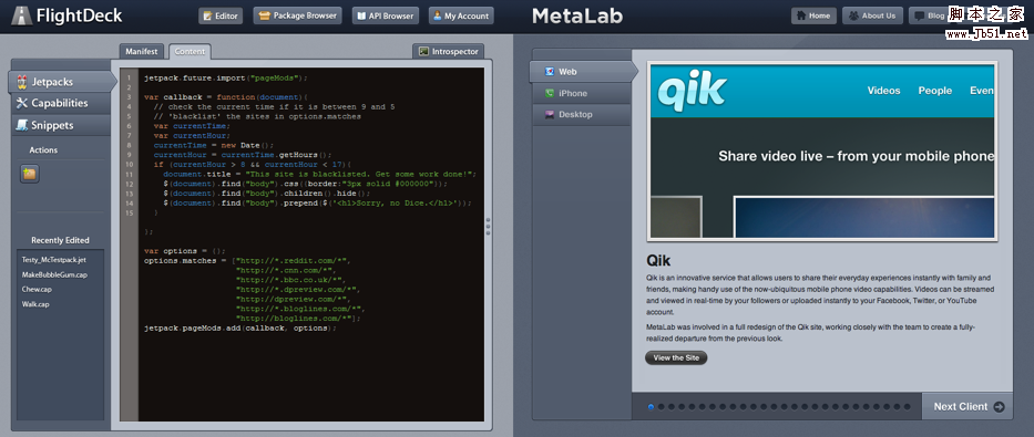 這家被抄襲的公司叫 MetaLab, Mozilla 的這款產(chǎn)品叫 Jetpack,是一個用來設(shè)計 Firefox 擴展的平臺,從產(chǎn)品截圖上來看,該產(chǎn)品的界面幾乎全盤照搬了 Metalab 的網(wǎng)站設(shè)計。