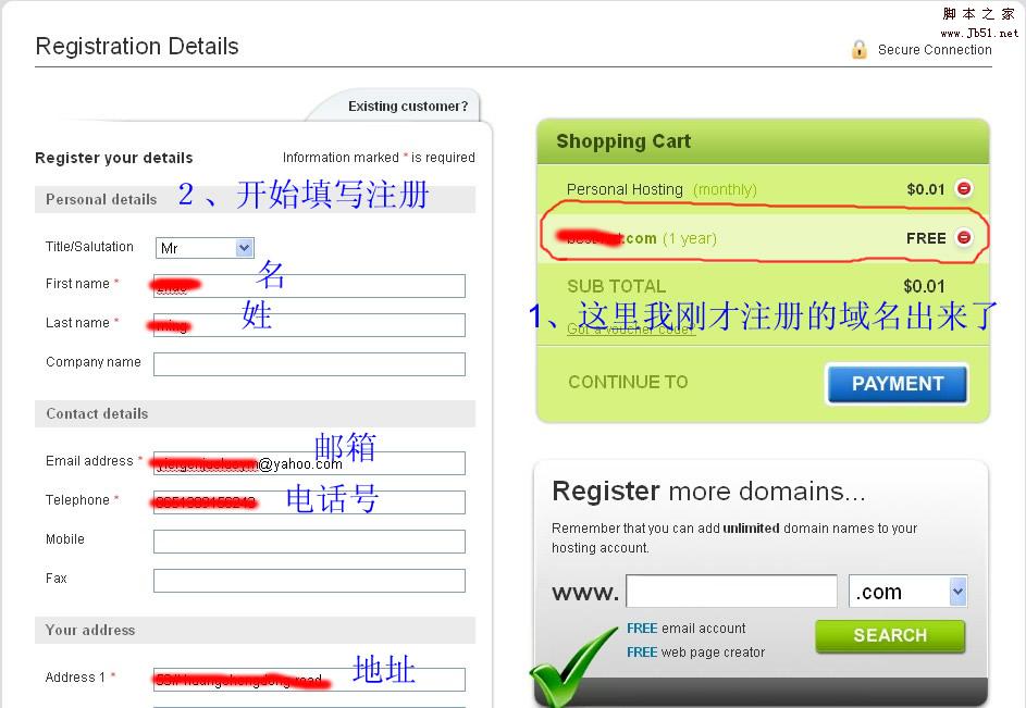 超低價(jià)頂級域名和美國主機(jī)的注冊步驟說明