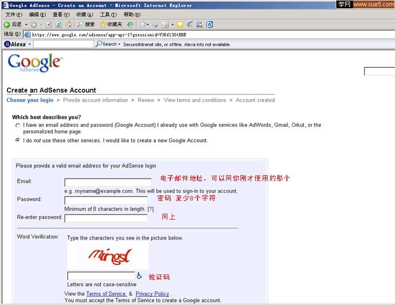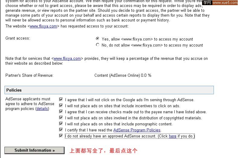 如圖, 在"Do you already have a Google Adsense account? "這,選擇"No"