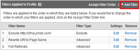 2. 進入profile settings頁面后點擊“+ add filter”。