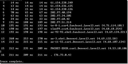 ( tracert IP 后,像圖中就是顯示 level3 的線路)