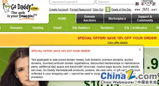 全球最大的域名注冊服務(wù)商Godaddy在今天再次推出注冊優(yōu)惠碼服務(wù),針對域名新注冊與續(xù)費(fèi)服務(wù)價格優(yōu)惠15%,其他服務(wù)不在本次優(yōu)惠之列,這是Godaddy在2010年之初推出的第三個優(yōu)惠政策。