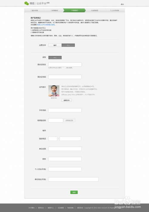 微信公眾平臺(tái)致力于打造真實(shí)、合法、有效的品牌推廣平臺(tái),我們有志與誠(chéng)信守約、進(jìn)取擔(dān)當(dāng)?shù)牡谌胶献骰锇閿y手并進(jìn),建立和維護(hù)良性互動(dòng)、健康有序的平臺(tái)秩序。為了更好的保障你和廣大微信用戶的利益,請(qǐng)你認(rèn)真填寫以下登記信息。