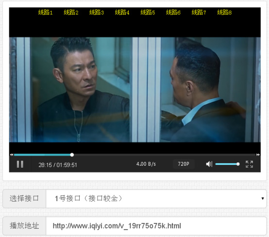 將以上VIP電影播放地址輸入到剛剛搭建好的“VIP視頻解析網(wǎng)站”解析一下,可以觀看全部電影。