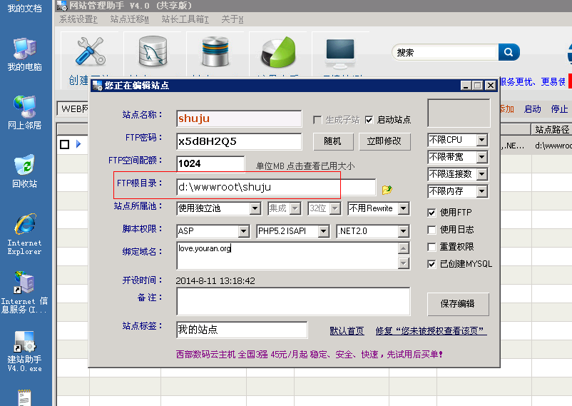 使用西部數(shù)碼網(wǎng)站管理助手在Windows的服務(wù)器上建站的教程