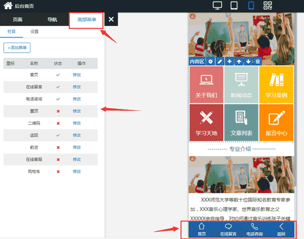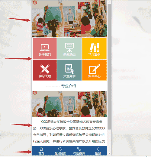 第三步:首頁(yè)編輯。編首頁(yè)內(nèi)容包括包括:banner圖片、網(wǎng)站欄目。云指建站的樣板已經(jīng)有自帶的欄目了,大家根據(jù)自己的需求來(lái)修改一下就可以了。一般情況下,手機(jī)企業(yè)站的欄目包括:關(guān)于我們、產(chǎn)品展示、新聞動(dòng)態(tài)、在線留言、聯(lián)系我們等。