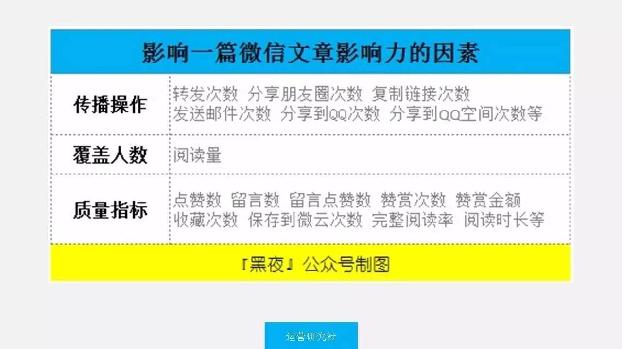 微信文章影響力是以閱讀量為基礎(chǔ),結(jié)合質(zhì)量指標(biāo)的綜合評(píng)分。