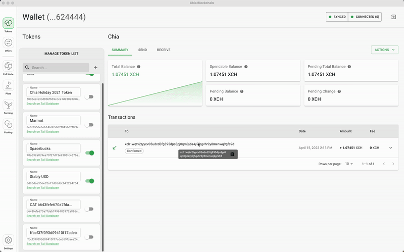 用戶(hù)現(xiàn)在可以顯示/隱藏代幣錢(qián)包。如果您已automatically_add_unknown_cats在 config.yaml 中關(guān)閉,新的代幣仍會(huì)顯示在那里,但在第一次打開(kāi)代幣之前不會(huì)創(chuàng)建這些錢(qián)包。