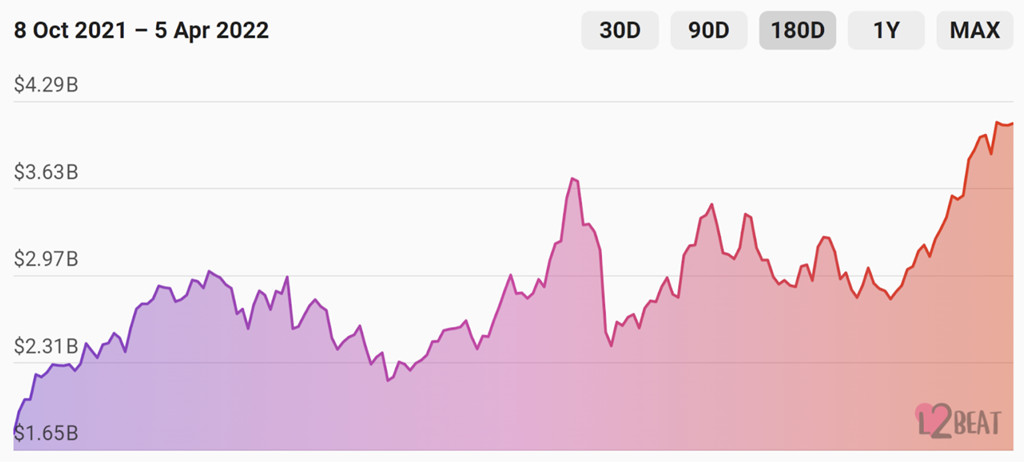 因此Layer2依然是今年最重要的看點之一。Arbitrum作為目前第一大Layer2網絡,每月有約15萬用戶在該網絡上使用SushiSwap、Curve、UniSwap、dForce等DApp。自去年9月主網啟動以來,已積累了超過40億美元的TVL(Total Value Locked總鎖倉價值)。