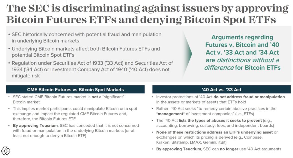 自去年11月以來,多家基金發(fā)行人試圖提交比特幣現(xiàn)貨ETF的申請,但都遭SEC以擔(dān)心比特幣市場存在欺詐和操縱的可能性為由拒絕,并表示在加密貨幣市場得到更好的監(jiān)管之前,不會批準(zhǔn)基于現(xiàn)貨的申請。