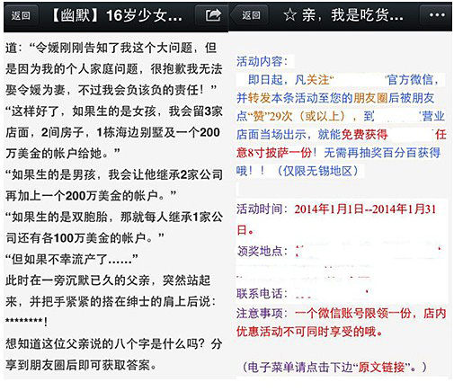 通過實(shí)物獎(jiǎng)品、虛擬獎(jiǎng)品(積分、信息)等獎(jiǎng)勵(lì)方式,強(qiáng)制或誘導(dǎo)用戶將消息分享至朋友圈的行為,都屬于違規(guī)行為。