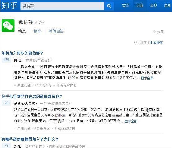 另外,如果是利用知乎的話,可以直接在搜索欄中輸入“微信群”、“QQ群”這樣的關(guān)鍵詞進(jìn)行檢索。