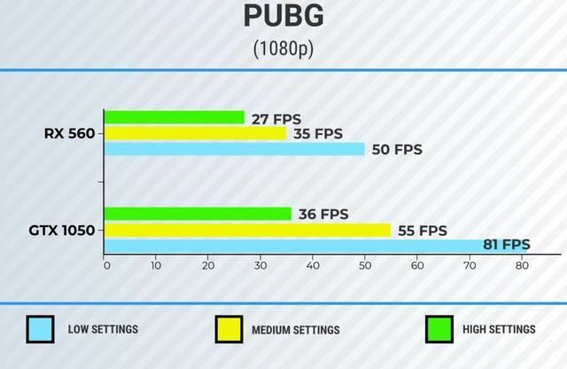 在低設(shè)置下,GTX 1050幾乎碾壓了RX 560。平均快了近25%,在中檔上,RX 560的差距縮小,僅落后約14%,而在超高設(shè)置下,它們之間的差距僅為10%左右。這很可能是由于RX 560具有兩倍的VRAM。