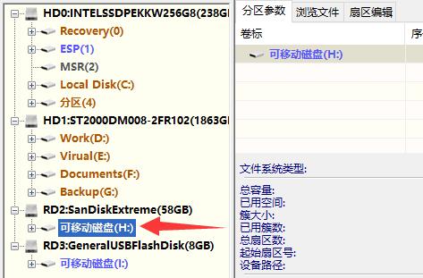 5、安裝完成后,在左邊找到并選中需要修復(fù)的u盤。