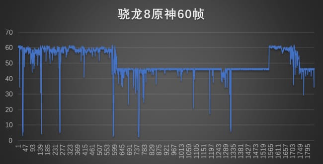 《原神》30分鐘60幀極清畫(huà)質(zhì)下,天璣9000平均幀率為56.21,平均功耗為5.4W;驍龍8平均幀率為50.26幀,平均功耗為5.6W。并且,驍龍8如果機(jī)身散熱堆疊不到位,SoC在重度游戲場(chǎng)景下極易撞到溫控墻,降頻鎖幀的現(xiàn)象頻繁發(fā)生。