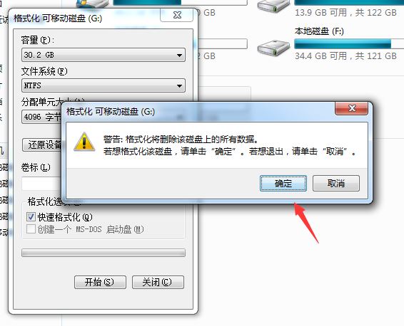 然后,我們在“文件系統(tǒng)”下拉列表中選擇“NTFS”,然后點擊“確定”進行格式化。