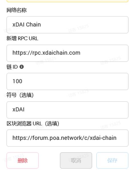 新增RPC URL:https://rpc.xdaichain.com(注意標點符號的半角和全角,需要半角)