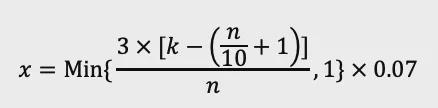 因掉線而罰沒(méi)的資產(chǎn)數(shù)額為在一個(gè)周期中發(fā)生的最大罰沒(méi)比例乘以驗(yàn)證人 Staking 的通證數(shù)量。罰沒(méi)的比例計(jì)算 X 公式為: