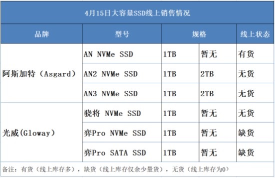 國(guó)內(nèi)存儲(chǔ)品牌嘉合勁威今天就披露,昨日起,旗下光威、阿斯加特品牌的多款大容量SSD紛紛售罄,供貨已經(jīng)告急。
