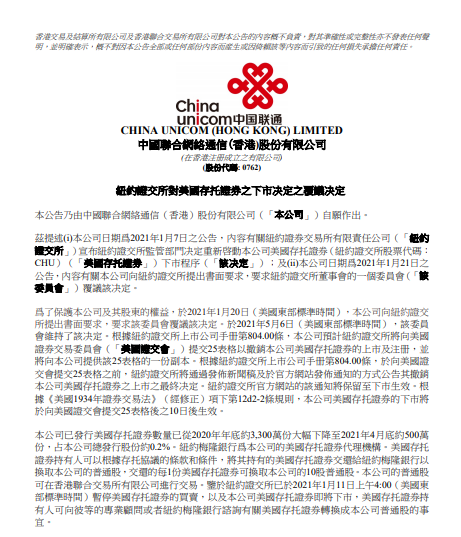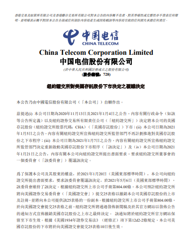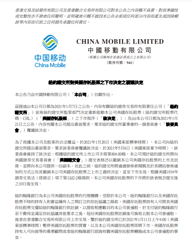 5月7日,三大運營商發(fā)布公告稱紐交所稱將對三家中國電信運營商啟動退市程序。