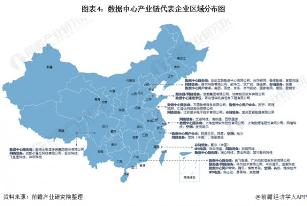 從代表企業(yè)分布情況來看,我國數(shù)據(jù)中心產(chǎn)業(yè)鏈相關(guān)企業(yè)在北京、廣東、浙江蘇等經(jīng)濟發(fā)達(dá)地區(qū)發(fā)展迅速,以北京為例,上游網(wǎng)絡(luò)/存儲設(shè)備制造企業(yè)有新華三、路由家等,中游數(shù)據(jù)中心服務(wù)商包括世紀(jì)互聯(lián)、光環(huán)新網(wǎng)等行業(yè)代表性龍頭企業(yè),美團(tuán)、百度、京東等下游互聯(lián)網(wǎng)用戶企業(yè)也聚集在北京。此外,廣東、浙江、上海、江蘇等地數(shù)據(jù)中心產(chǎn)業(yè)鏈發(fā)展也相對完善。