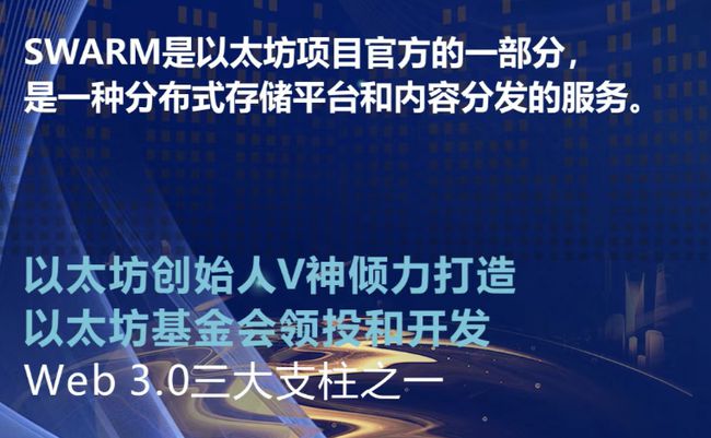 1,Swarm是一個明星項目,是V神操刀的落地項目,不管說號召力和技術實力是非常強大的;強大的名人效應加頂級技術團隊,項目不火都難。