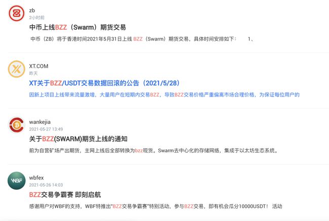 多家交易所連夜上線BZZ(期貨/現貨)!Swarm火爆非凡!