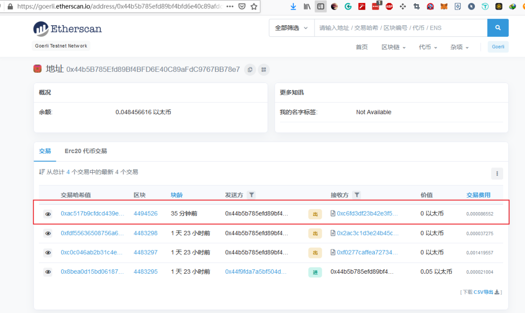 當你有支票后,并且提取之后,拿著這個支票合約地址,到區(qū)塊瀏覽器查你的支票收支和余額狀態(tài)(紅色部分替換成你自己的)直接訪問: