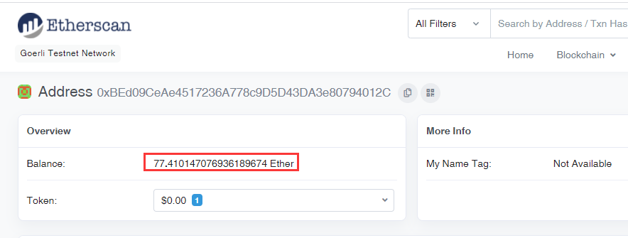 這樣就領(lǐng)到了87.5個(gè)ETH測(cè)試幣。