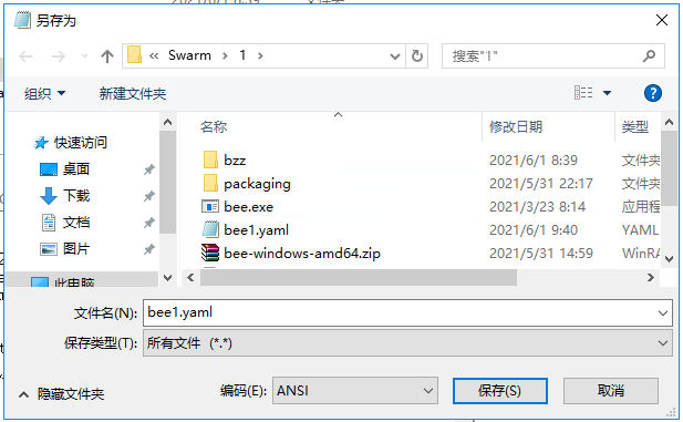 1.yaml,保存類型選擇“所有文件”。如圖: