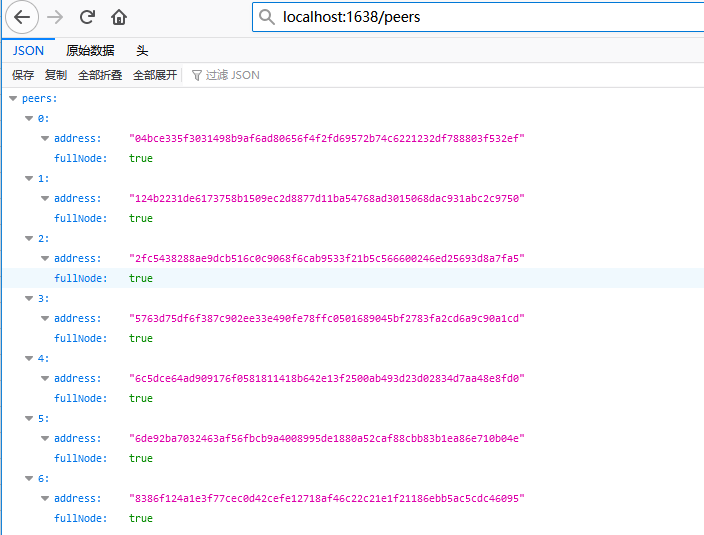 如要查節(jié)點2,請在瀏覽器里輸入http://localhost:2638/peers