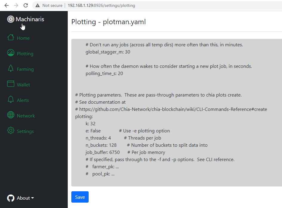WebUI中提供了Chia和Plotman的配置更新。