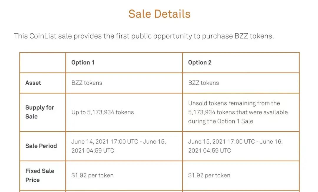 CoinList上BZZ公開售賣的具體信息