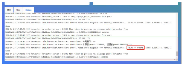 6. 開始挖礦,可以去debug 中看日志,顯示如下圖代表正常在挖了。