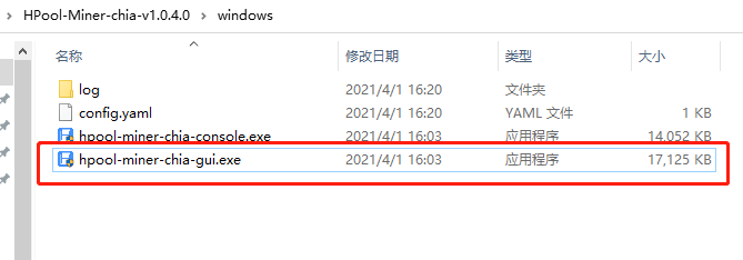 解壓下載的壓縮包,雙擊運行hpool-miner-chia-gui.exe;
