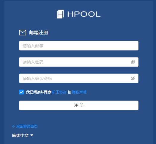 進(jìn)入hpool池,然后在它的主頁上點(diǎn)擊注冊。