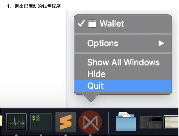 - 退出已啟動的錢包程序
