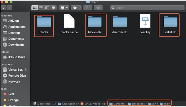 4. 同步驟2進(jìn)入新錢包的目標(biāo)路徑Contents>Resources>bin>chain,將之前備份的舊數(shù)據(jù)拷貝進(jìn)去,如果路徑下已有同名文件夾需要先刪除