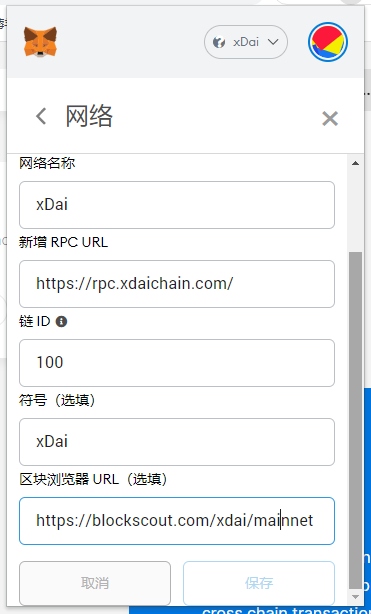 區(qū)塊瀏覽器 URL(選填):https://blockscout.com/xdai/mainnet