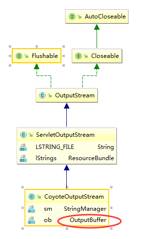 以上,注釋有說明是OutputStream是用來寫響應body內容的,也有提到flush()方法,說明肯定是有緩沖的,所以應該不是直接操作socket寫數據。我猜測應該是有一個字節(jié)數組用來暫時存儲,然后統(tǒng)一flush。但是還是不太確定,于是簡單翻閱了下tomcat源碼。