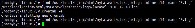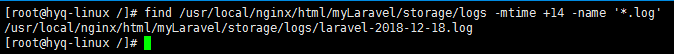 有一條日志。編輯定時任務(wù),執(zhí)行 crontab -e 將刪除日志命令追加到末尾 */1 * * * * find you/path -mtime +14 -name '*.log' -exec rm -rf {} \; ,設(shè)定為每分鐘執(zhí)行一次。稍等一分鐘,再來查看 14 天之前的日志