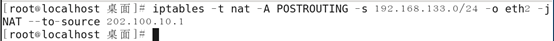 iptables -t nat -A POSTROUTING -s 192.168.133.0/24 -o eth2 -j SNAT --to-source 202.100.10.1