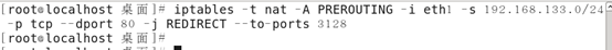 http_port 192.168.133.130:3128 transparent #192.168.133.130為內(nèi)網(wǎng)接口IP cache_dir ufs /var/spool/squid 100 16 256 iptables -t nat -A PREROUTING -i eth1 -s 192.168.133.0/24 -p tcp --dport 80 -j REDIRECT --to-ports 3128 #-i接口是內(nèi)網(wǎng)接口 -s 跟的是內(nèi)網(wǎng)網(wǎng)段 -j 跟的是REDIRECT(重定向)