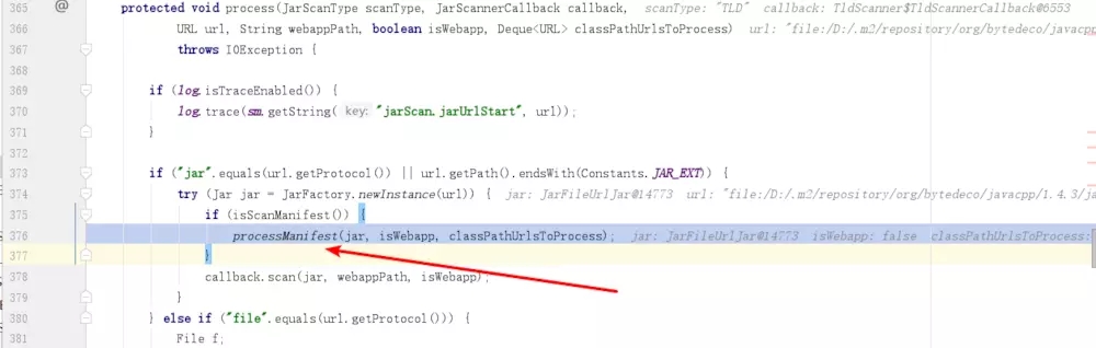 該方法會(huì)對(duì)每一個(gè)jar進(jìn)行加載及分析處理,該方法中重點(diǎn)關(guān)注