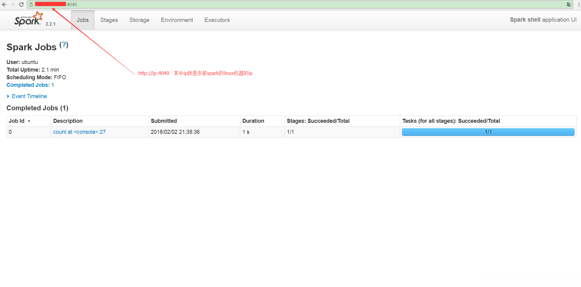 來看看可視化的web頁面, 在Windows上輸入: http://ip:4040
