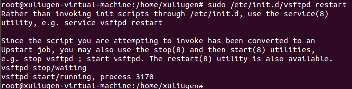 命令是:sudo /etc/init.d/vsftpd restart