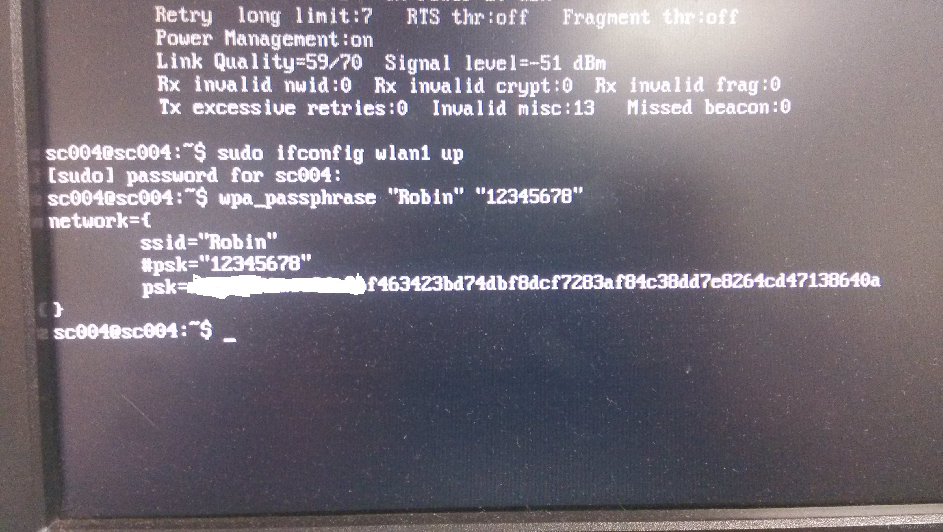2.啟用無線網(wǎng)卡:sudoifconfigwlan1 up