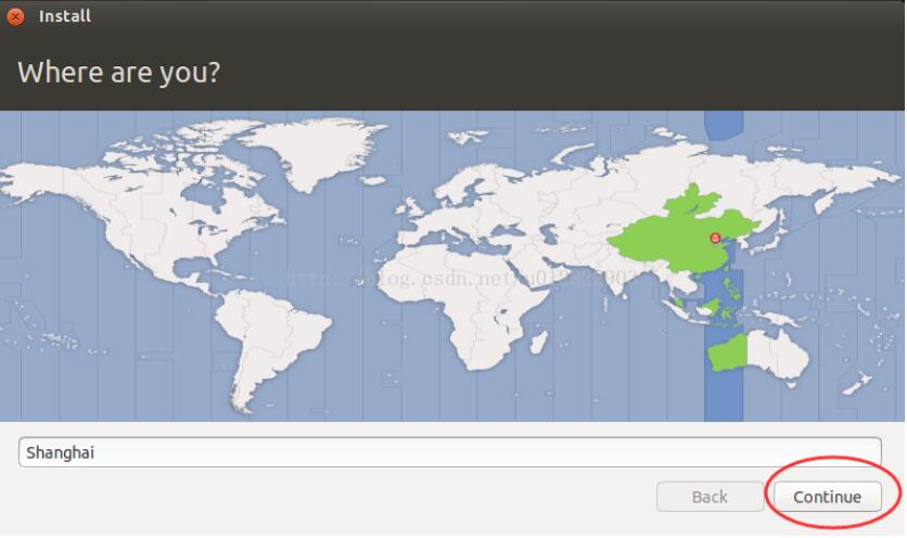 4.選擇時(shí)區(qū),一般都是默認(rèn)的“shanghai”,點(diǎn)擊“繼續(xù)”。